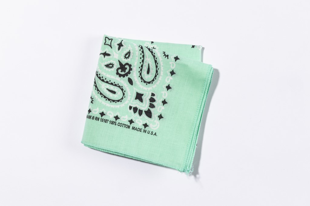 ハブアハンクのペイズリーバンダナは色挿しの基本アイテム! 表面にノリがつきハリのある生地感ながらコットン100%のため、使い込むにつれて柔らかい風合いに育つ、ファンの多いファッション小物の代表格。パンツのバックポケットに挿す王道の使い方はもちろん、目に付きやすい胸ポケットに挿すのもあり。上級者は二枚持ちもオススメ!? 396円