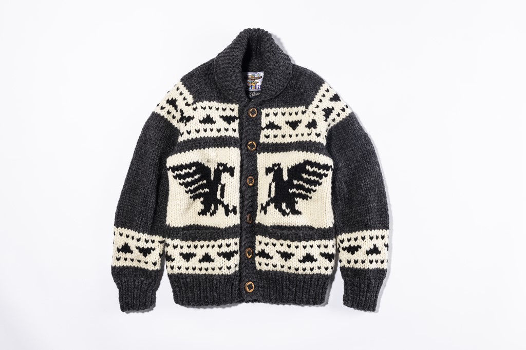 ハンドメイドの温もりを感じる、この時期にぴったりなアイテム。なんとデザインは、1950年代に作られていたヴィンテージカウチンの復刻シリーズで、アメリカの国鳥であるイーグルをモチーフにしているのだとか!
