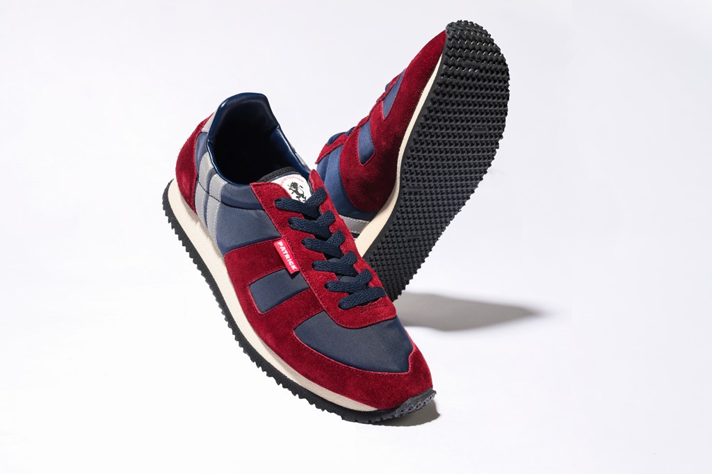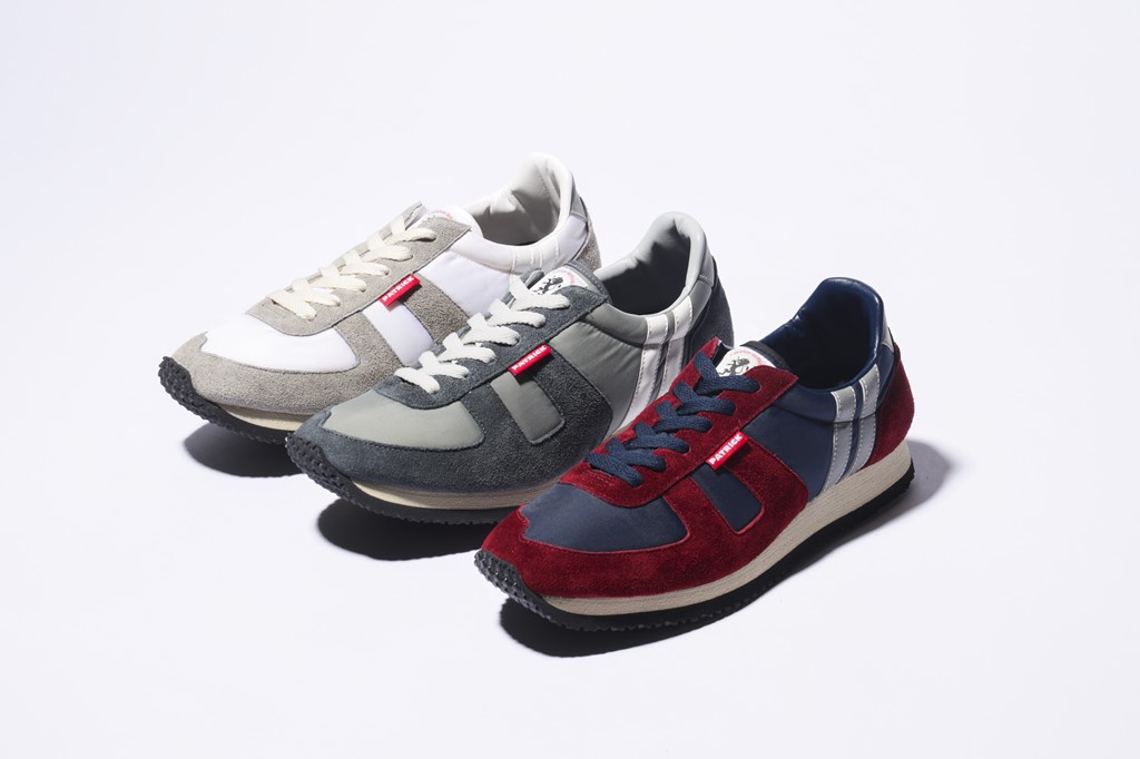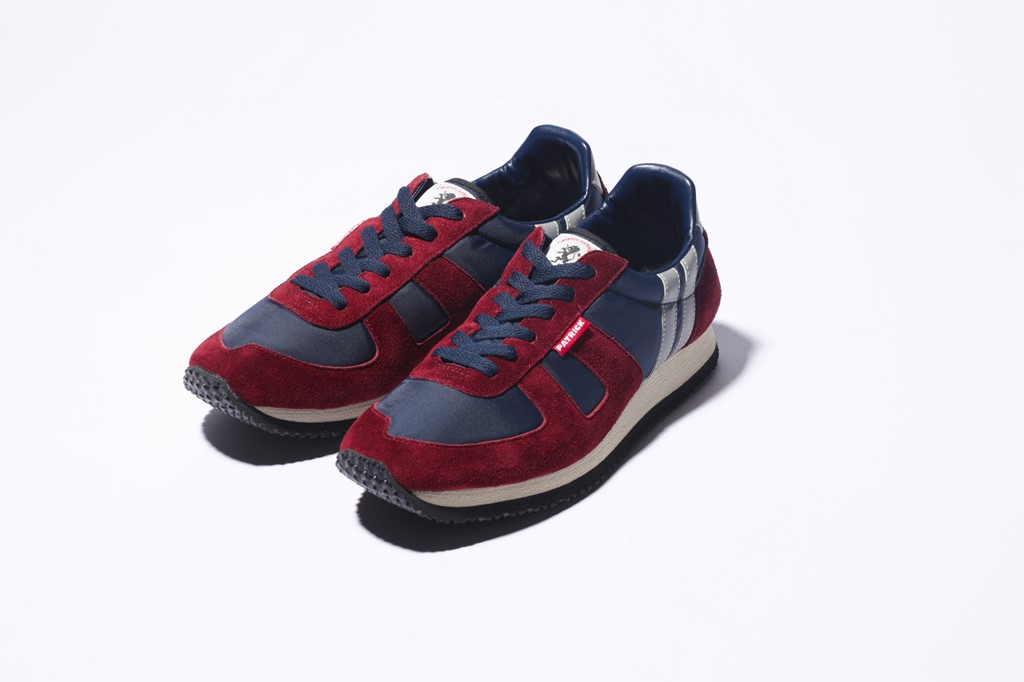 革靴でもよく高級モデルに用いられている製法で、文字通り“袋”のように足を包みこまれているようなフィット感が特徴。デザインは80年代のランニングシューズがベースとなっており、ローテクスニーカーらしいカジュアルさを備えつつも、フランス生まれのエレガンスを兼備。サイドにあしらわれた、ブランドの象徴である2本線がアクセントに。