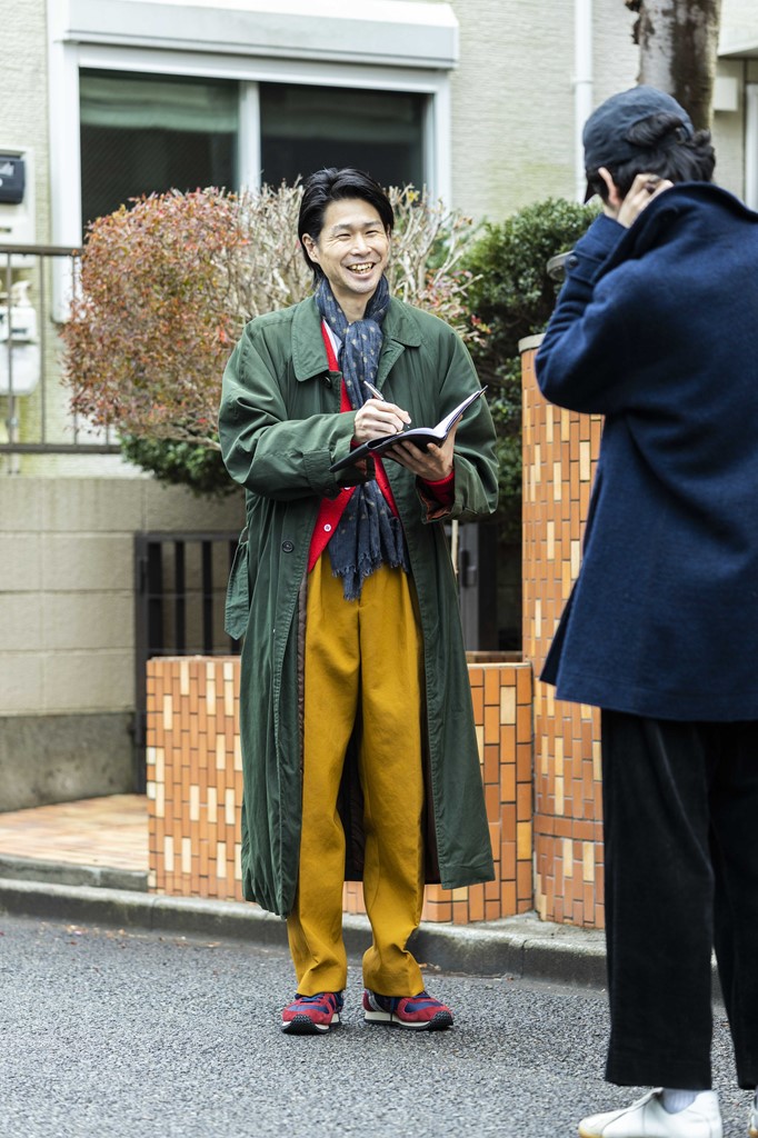 「ファッション業界人にインタビューをさせてもらうことの多い我々編集部。大御所の方にお話を伺う機会も多いので、品のあるコーディネイトを心がけています。そんな時、足元にハズしとして[カリフォルニー]を取り入れることで、一気にリラックス感を演出できる。あと、普段はスウェットのような着ていて疲れない服が好きなので、足元だけでもラクしたいというのもあります(笑)」