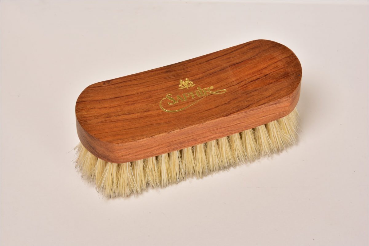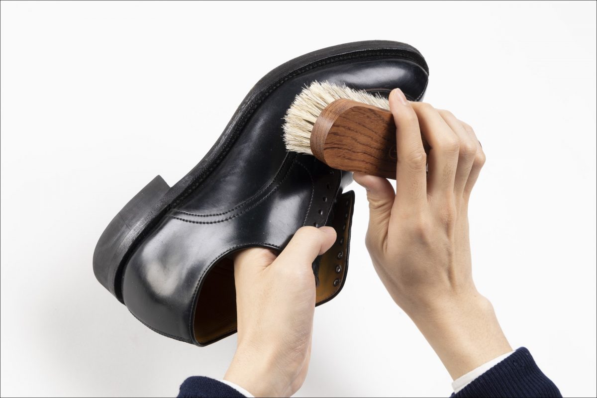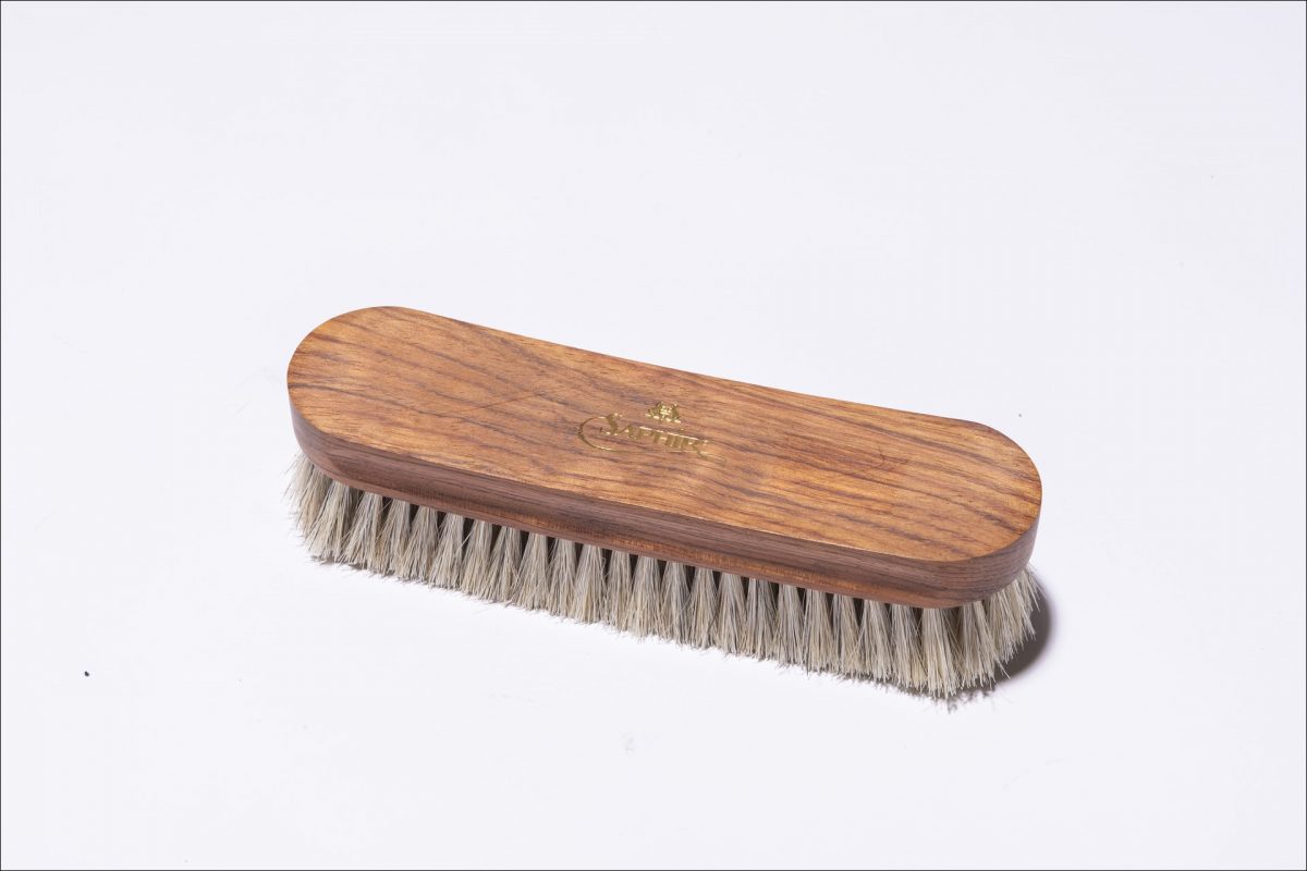 コードバンに固いブラシは厳禁。毛羽立って光沢感が失われる可能性があるので、馬毛ブラシのような毛先の柔らかいものをおすすめする。