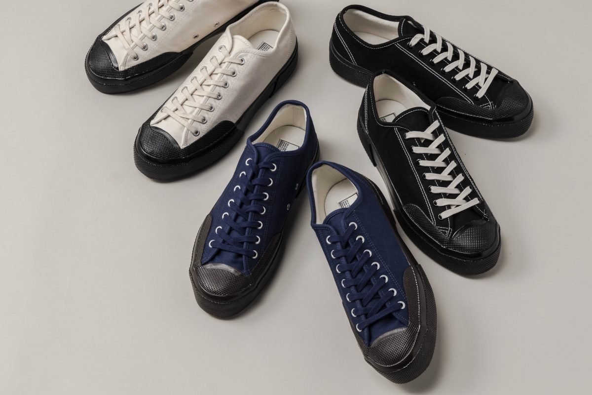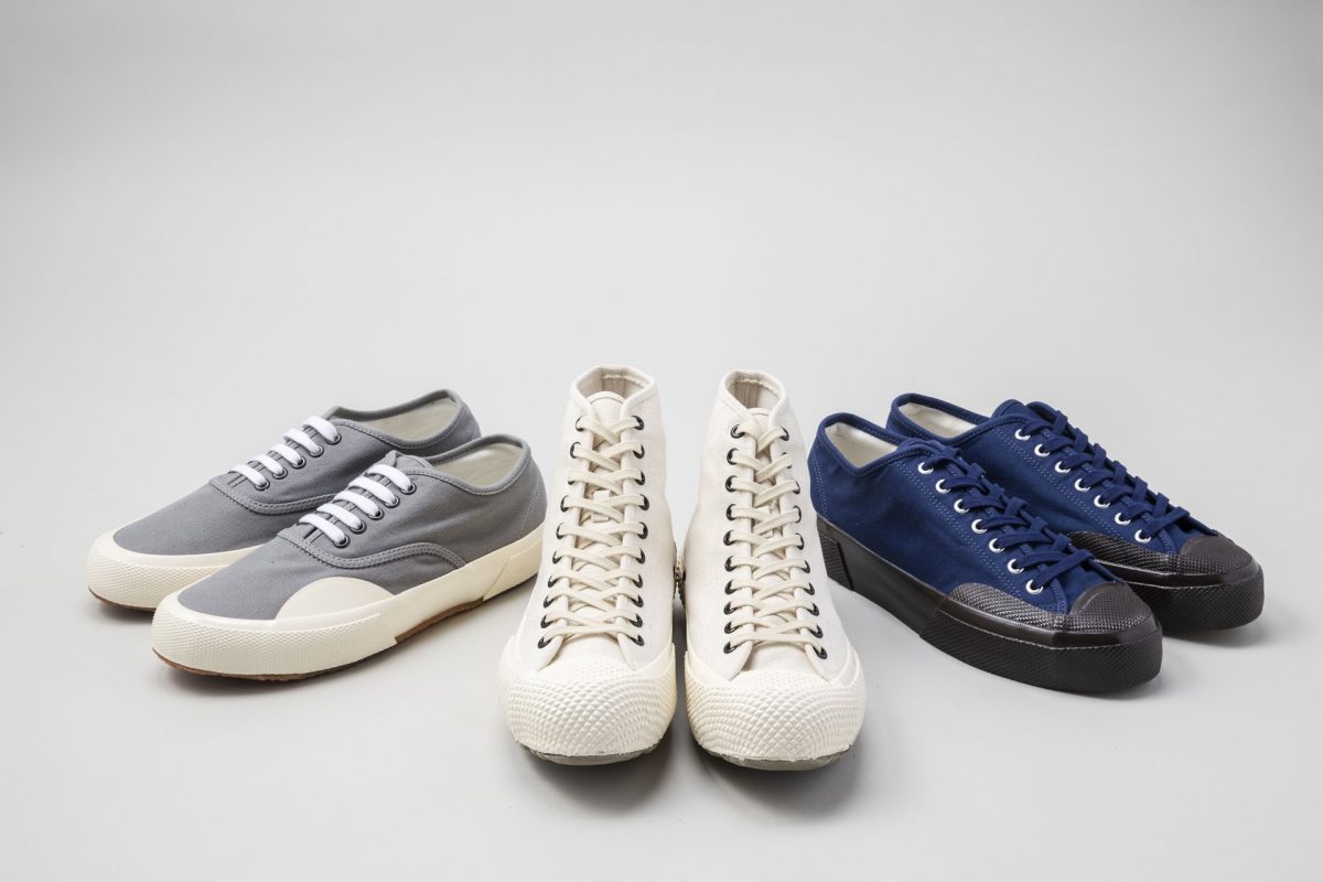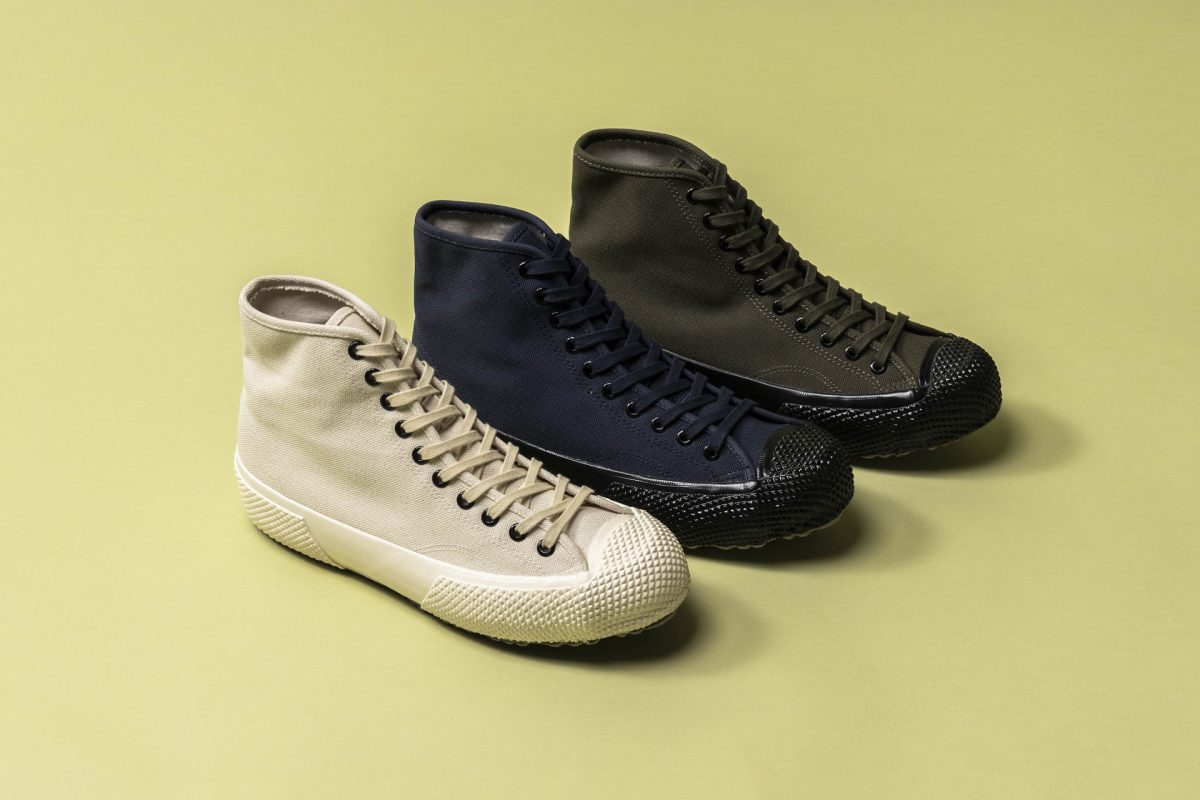 丈夫な日本製のキャンバスアッパーや、スペルガのアーカイブに見られるカレンダーソールなど、ミリタリーらしいデザインを盛り込んだ重厚感のあるカテゴリ。スニーカーを主役にしたコーディネイトを楽しめる。各1万6500円