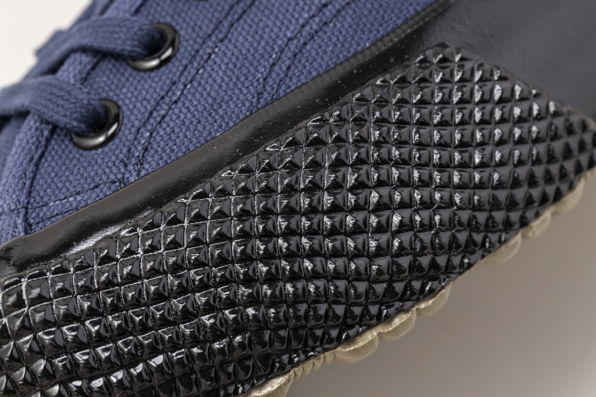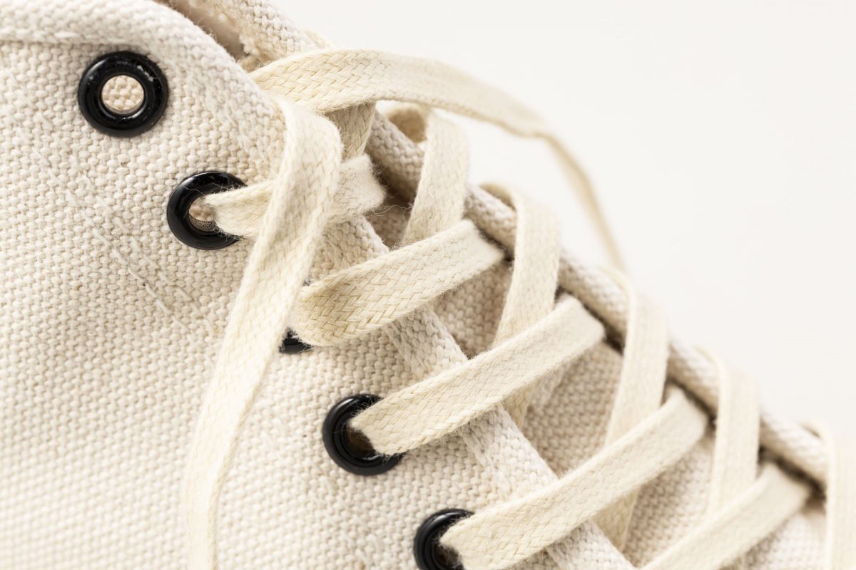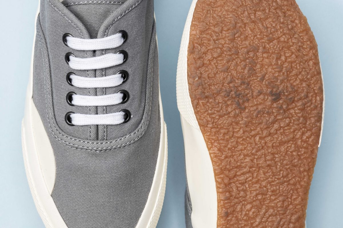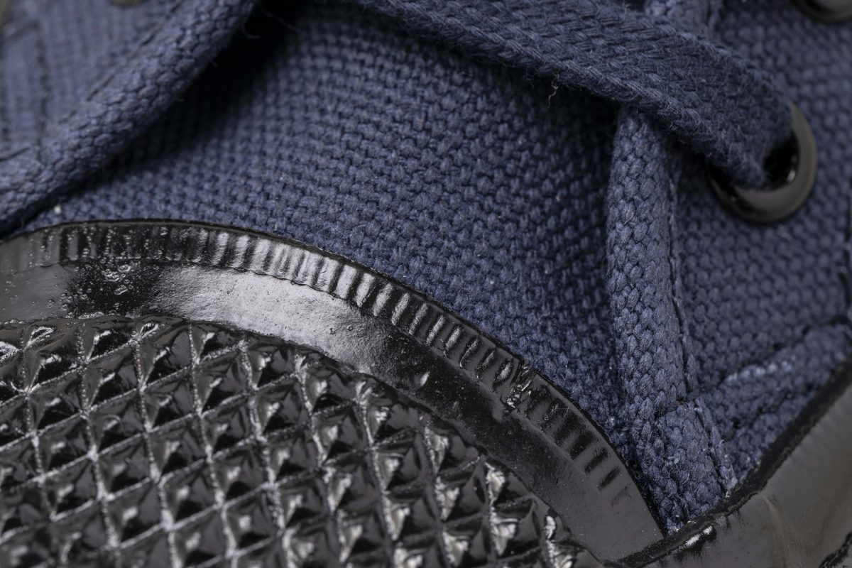 岡山県にあるデニム生地メーカー「コレクト」は、希少な旧式力織機や染色加工機を使用する日本では数少ない工場のうちのひとつだ。アッパーには、そんな有数の技術力を誇るコレクト製のキャンバスを使用している。