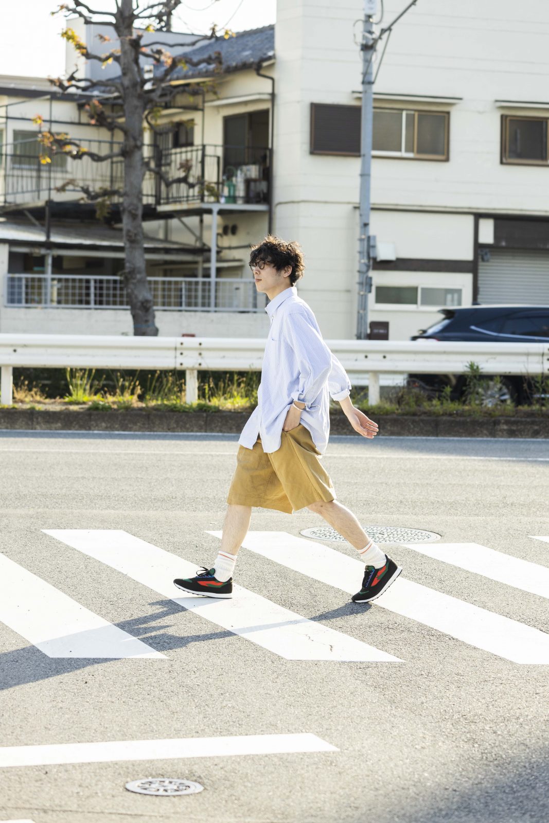 ややクセのあるカラーリングは、コーディネイトのアクセントとしてぴったり。例えばショーツを穿くことの増える春夏は、いつも以上に足元が目立つもの。トップスがシンプルなシャツだったとしても、シューズで遊びを加えればつまらないコーデになる事態は避けられる。今回のようにボリューム感のあるウエアを着用する際は、ロング丈のソックスを組み合わせて足元により重みを与えるなど、全体のバランス感も意識したい。