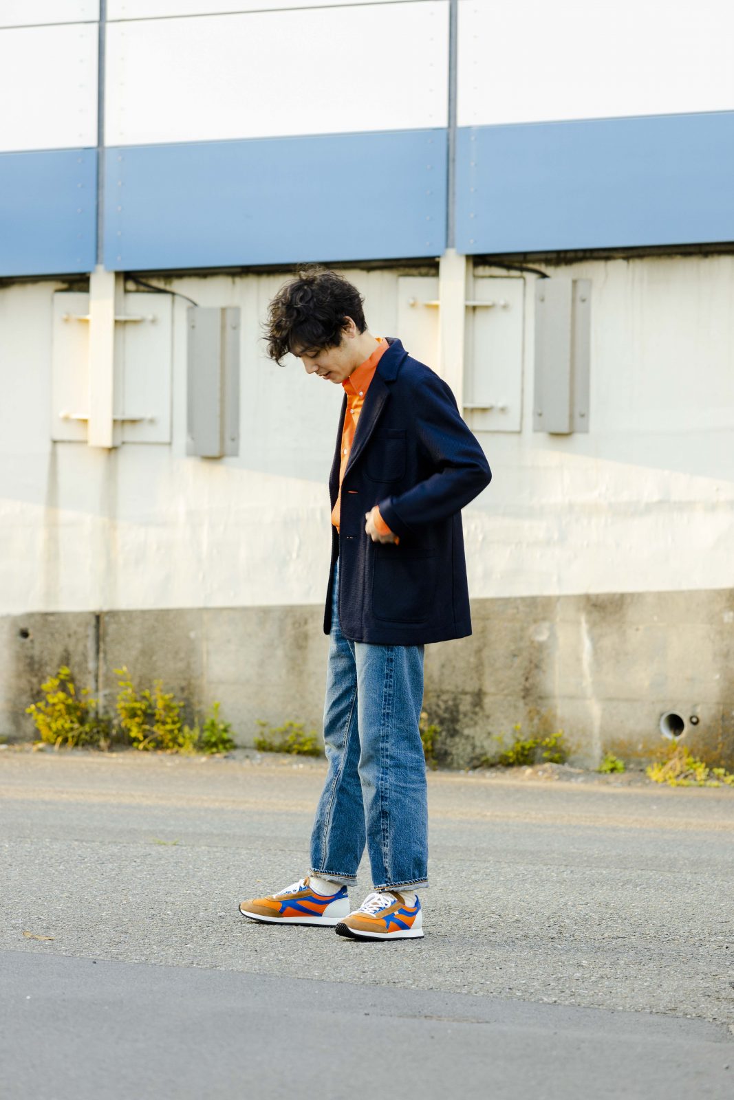 スポーティな印象の強い[ボヤージャー]、例えばスウェットパンツなどスポーツ由来のアイテムとの相性は間違いなく抜群だろう。しかし、いつものアメトラスタイルにハズしとしてあえて取り入れてみるのも挑戦的でおもしろい。インナーのシャツやネクタイなどで、足元の色味を拾ってあげると、よりファッション玄人感が増す。