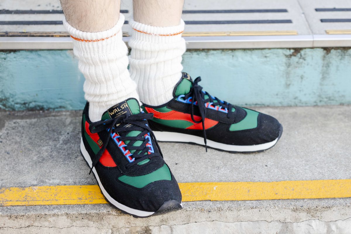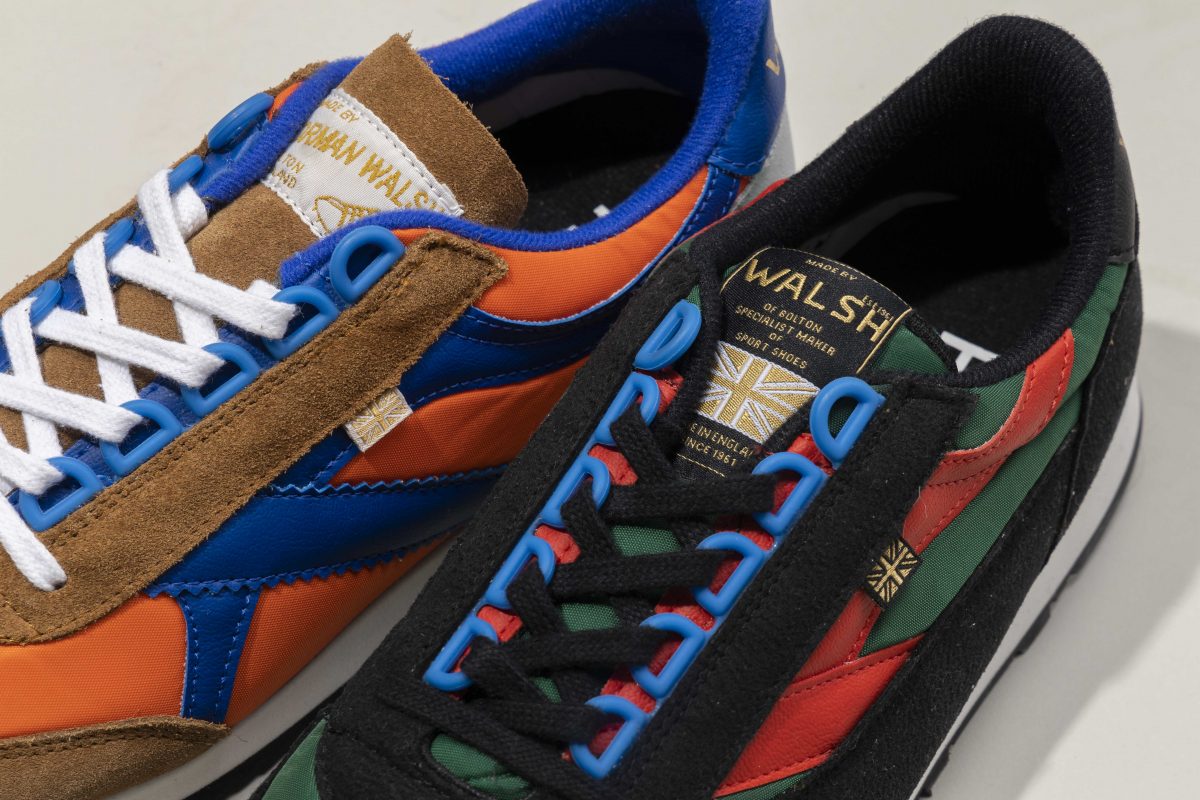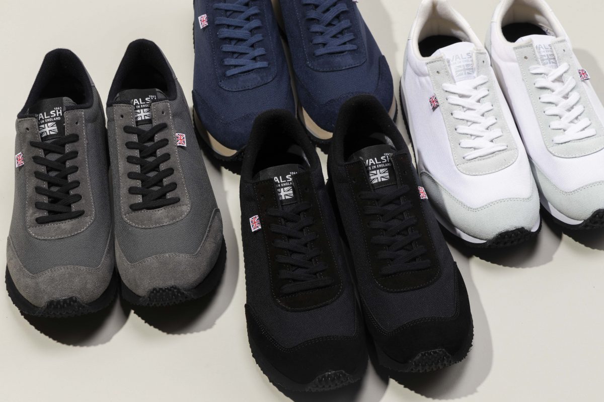 ウォルシュのスニーカーはいまやスポーツの枠を飛び越え、カジュアルシューズとしても世界中の人気を博している。それは、経験に裏打ちされた確かな技術力とウォルシュファミリーの類い稀なデザインセンスによるもの。また、いまだにすべての商品が、英国ボルトン市の小さな工場でわずか10人の職人によって丁寧に作られているのも最大の魅力のひとつだろう。
