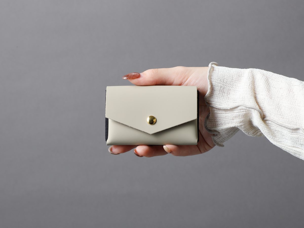 クレジットカードサイズでありながら、使いやすさを追求した 【Tiny-001 / smallest wallet】。カードを背面のゴム部分に重ねて収納し、プルタブを引くことで引き出し可能なクイックアクセス機構を採用。世界最小のサイズ感を実現した。紙幣は2つ折りで入れ、小銭は手前のポケットに収納。紙幣10枚/コイン20枚/カード5枚と、そのコンパクトさからは想像できない収納力を誇る。5,280円