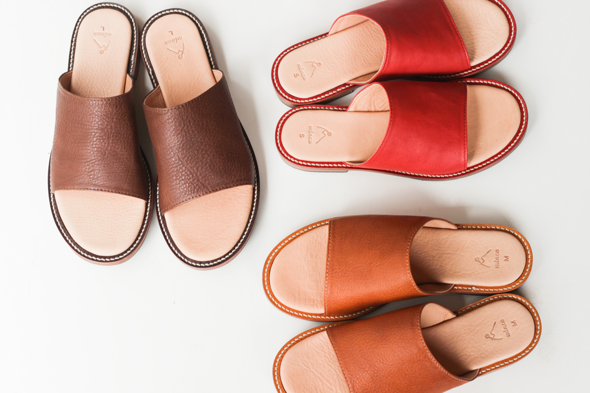 こちらは女性用のサンダル。レディースタイプは、おしぶちに同ブランドにしか卸されていないハーネスレザーを使用、こちらは底まで栃木レザーを使ってる。革部分全ては手磨きで職人が丁寧に仕上げた。今回のオンラインフェスでは数量とカラー限定で販売!