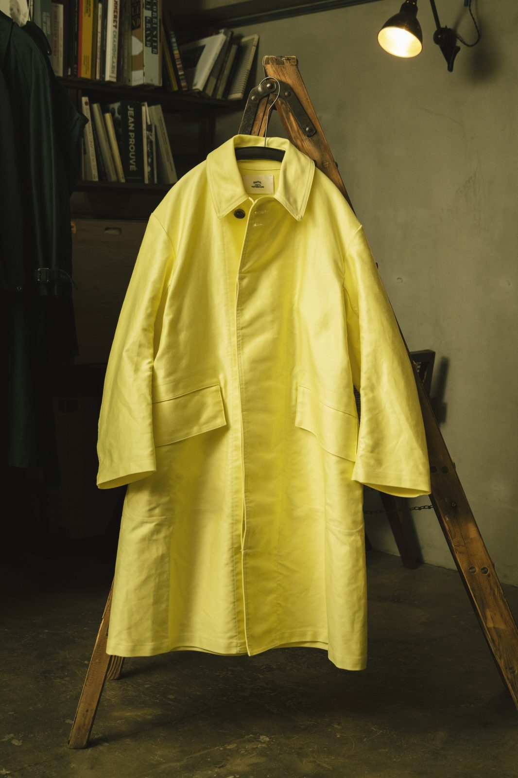 写真のアイテムは、1950年代の鉄道会社のコートを再構築したもの。レモンをイメージしたカラーリングのモールスキン生地が新鮮だ。