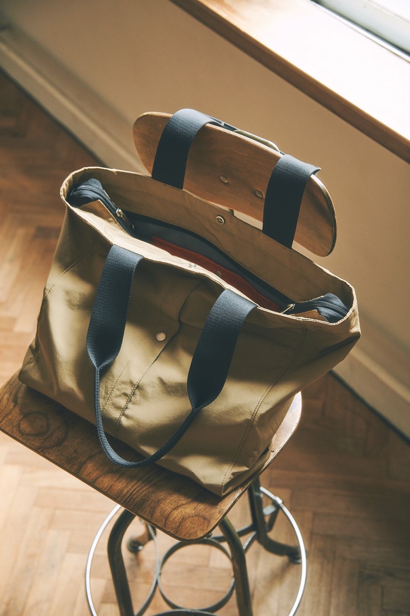 アウトドアウエアの前立てをモチーフにした前面と背面のポケットが特徴的。内装にも撥水加工を施したポケットを配す。10月下旬発売予定。2万4000円+税(田☎03-3862-1021)