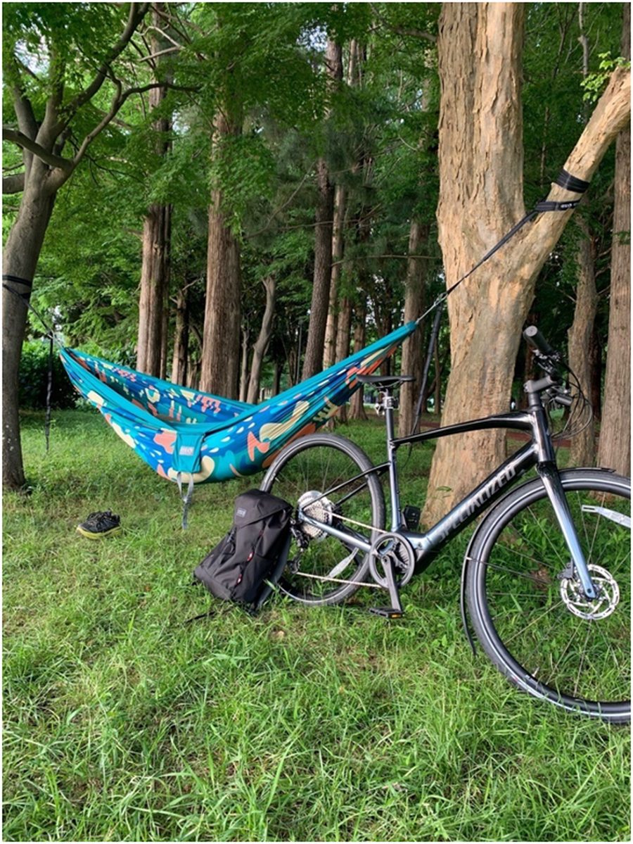 マウンテンバイクの試乗だけが、このイベントではない。森林でのハンモック体験や、豪華賞品が当たる⁉輪投げ、さらにマウンテンバイクの泥除けを作るDIYワークショップも用意している。