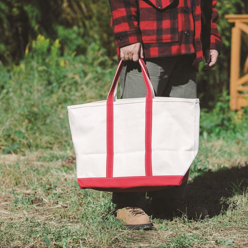 いまだアメリカ製で作られているクラシックアウトドアの大定番トートも大容量のL サイズを選べば、ブランケットやランタンなど、キャンプギアが十