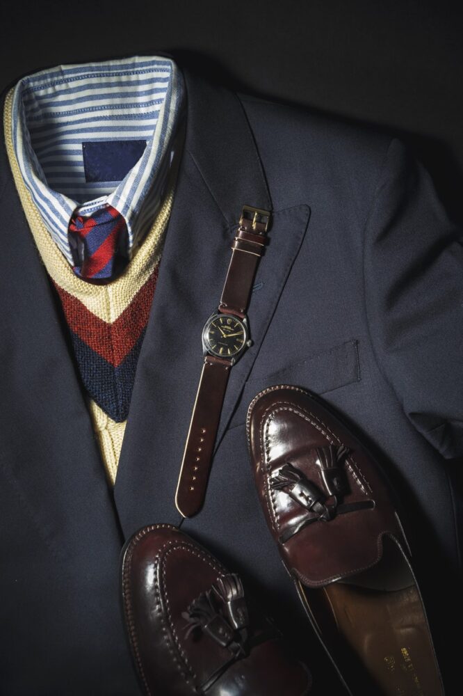 時計ベルトを付け替えることは、ちょっとした変化ですが、実はスタイリングに絶大な変化をもたらしてくれる。そんなこと、読者諸兄ならご存じの通りですよね。夏だけナイロン製のNATOベルトに替えたりする感覚で、この冬はコードバンのベルトに替えてみるのはどうでしょうか?