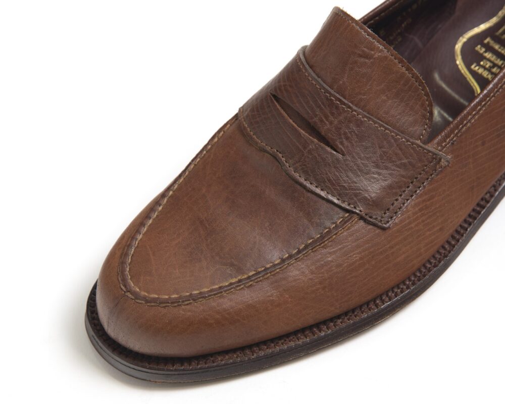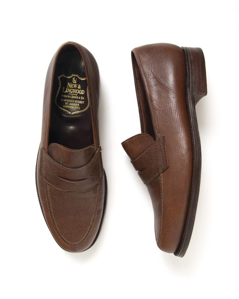 知る人ぞ知る英国の名門ブランド、ニューアンドリングウッドのコインローファー。こちらなんと“幻の革”と呼ばれる本物のロシアンカーフを使用した超希少な一足。ロシアンカーフとは、1700年代の帝政ロシアにて生産されていた植物鞣しのトナカイ革で、現在はとある沈没船から回収することでしか手に入れられないのだとか。革靴の域を超越した、もはや国宝である。