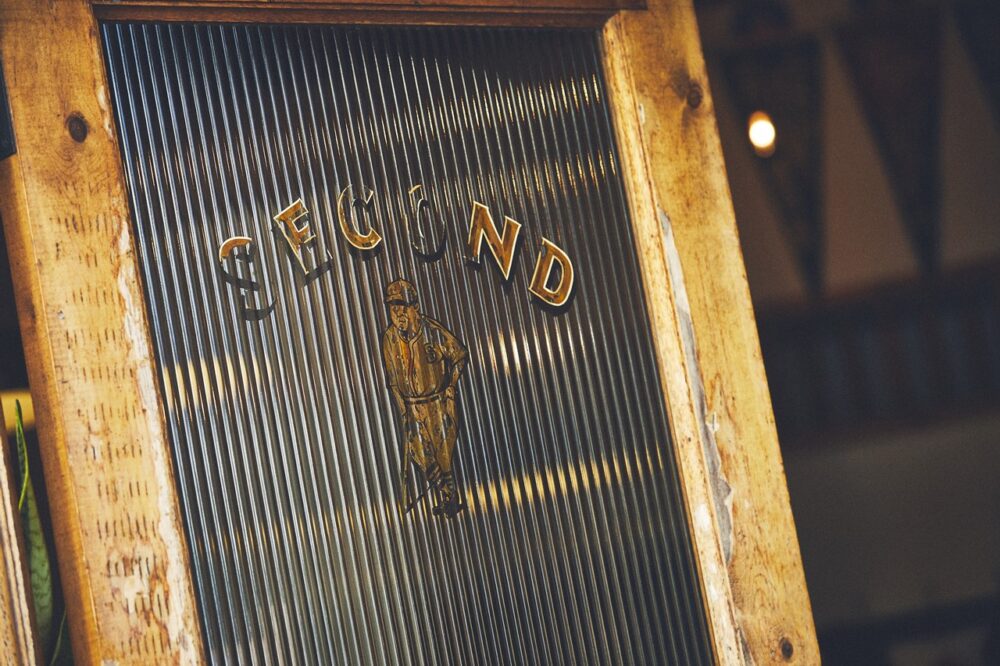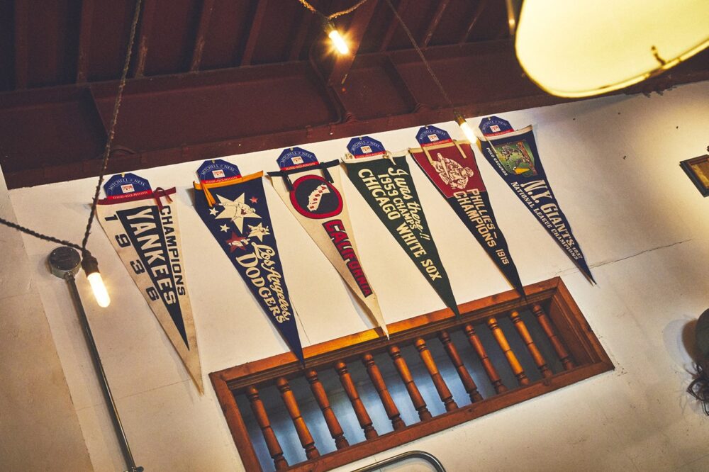 「メジャーリーグのロッカールームをイメージした」という内装は、オーダメイド家具など制作する東京・世田谷のNOTEWORKSが手掛け、エントランスドアに描かれたペイントは横浜のナチュラリーペインティングが担当。重厚なウッド調の空間に野球グッズが点在する店内もショップの独自性が見事に表現されているポイントだ。そう、ショップ名の「セカンド」とは、まさにベースボールから着想を得ている。