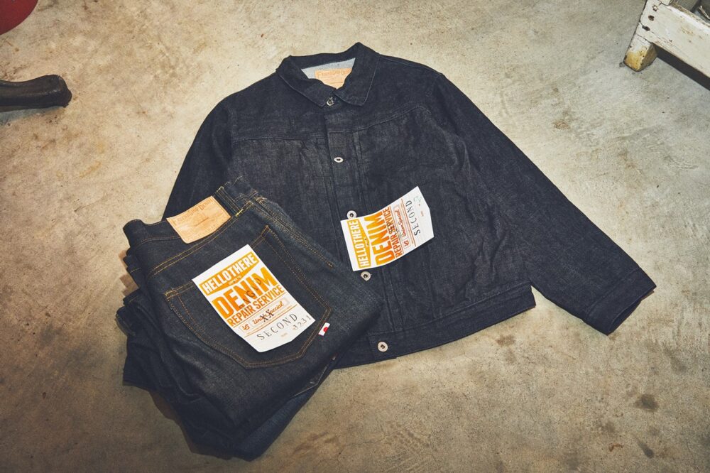デニムの世界的産地、岡山で織られたデニム生地を福岡県糸島のリペア職人による縫製で設えたオリジナルデニム「FRIENDSHIP DENIM」。ヴィンテージスタイルのプリーツ入りデニムジャケット(3万9600円)はポケットなどを内側に施しシンプルでミニマルなスタイルにアップデート。レギュラーストレートのデニムパンツ(2万6400円)とともに定番人気のアイテム。