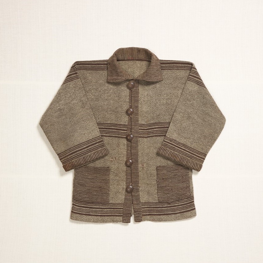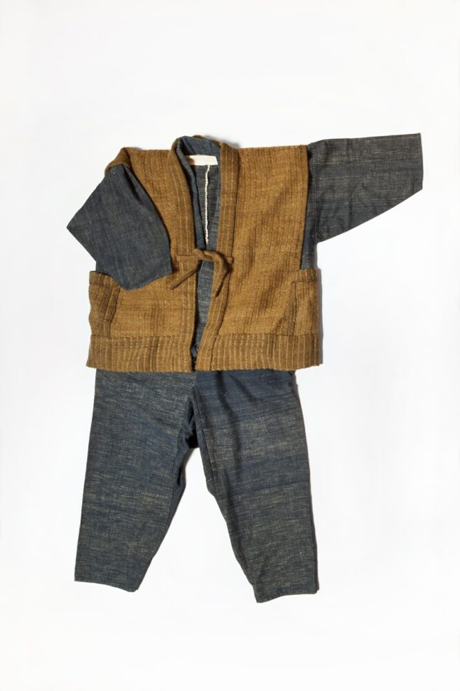 柳愛用のホームスパンジャケットが展示されていたコーナーには、濱田庄司が着用した作務衣もあった。陶芸家の濱田庄司や河井寬次郎が焼物の仕事をする時には、もともと禅宗の修行僧が掃除などの労働作業(作務)を行う際に着ていた作務衣がユニフォームになっていたのだ。