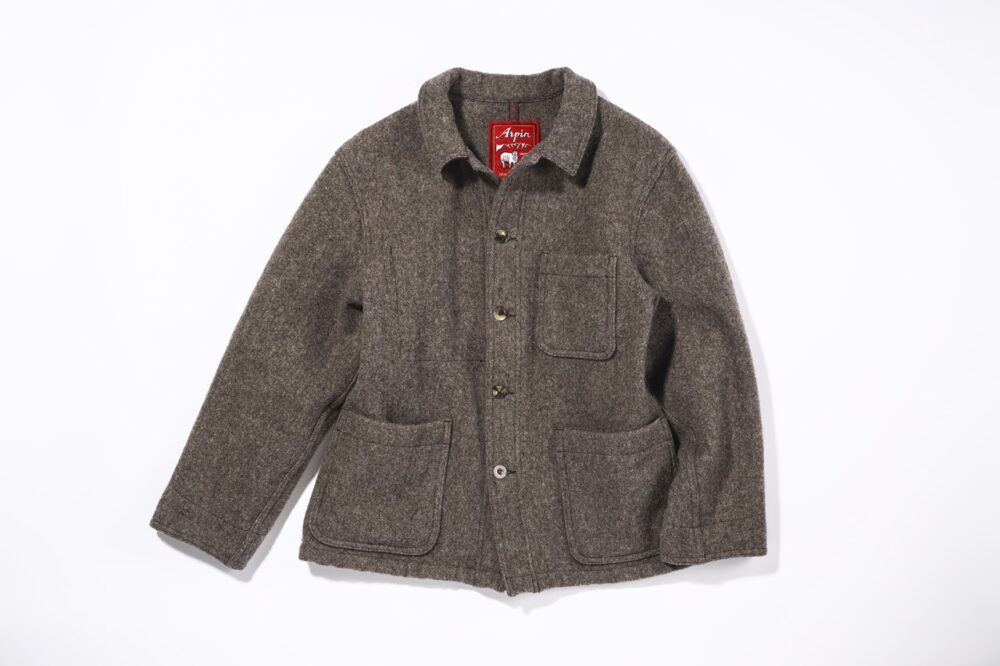 テキスタイルメーカー、アルパンを採用したウール製のフレンチワークジャケットはアメリカものと違い美しいパターンが魅力。