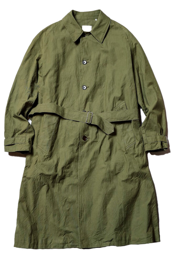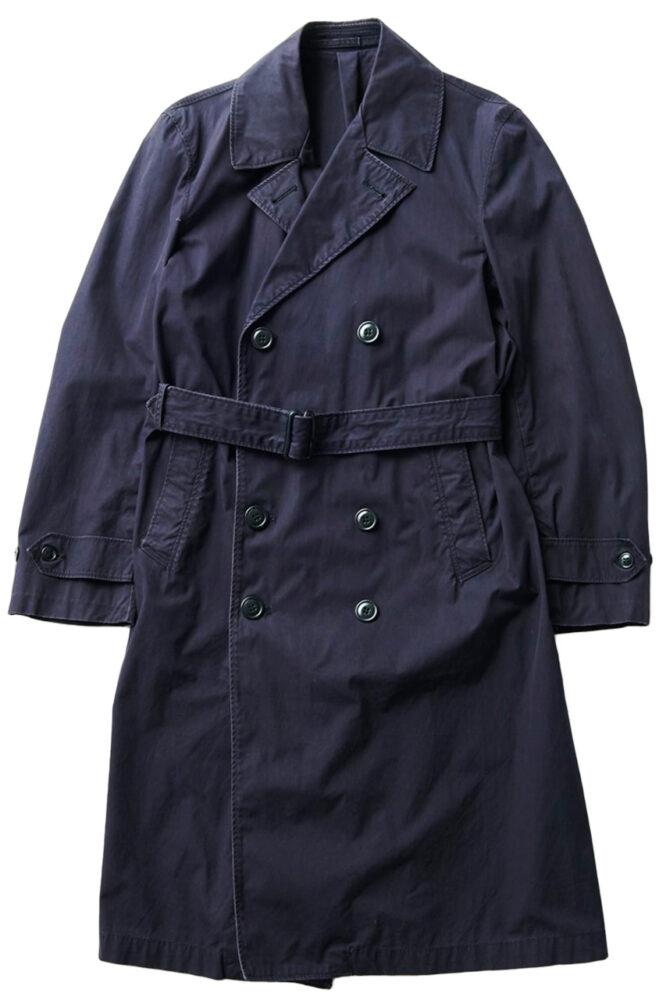 1960年代に米国海軍に支給されていたレインコート。ダブルブレステッドでウエストベルトが付く。高密度のコットンナイロン生地。「コットン混紡ならではの風合いのあるネイビーに色気を感じる」