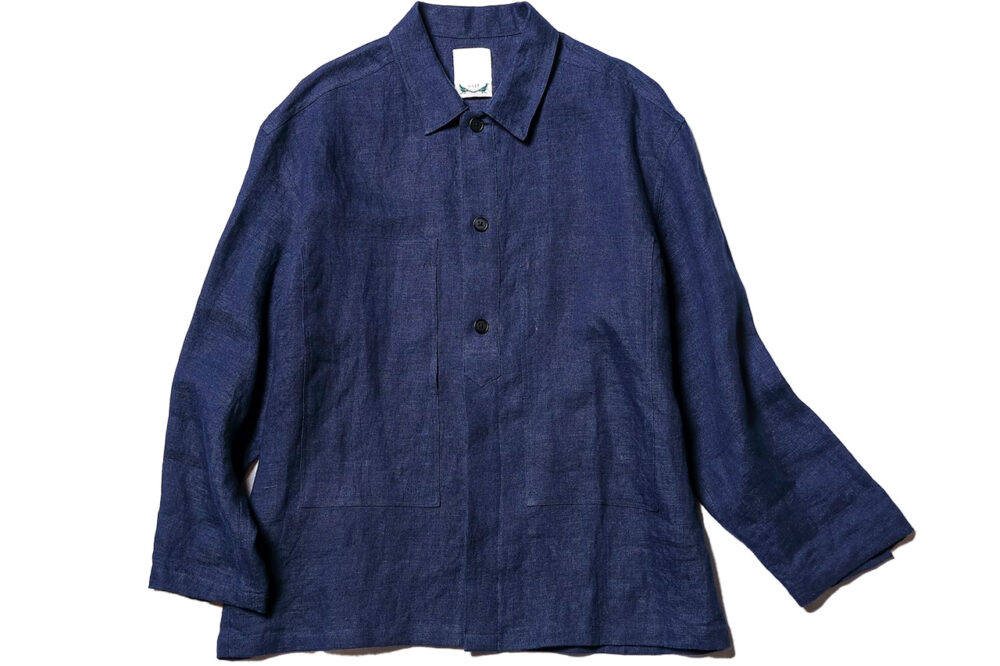 USネイビーのカバーオールをモチーフにしたリネンJKT。「プルオーバーの雰囲気を残しつつ全開仕様にしています。ハイゲージのタートルの羽織として使いたい」3万8500円(ブルーム&ブランチ青山)
