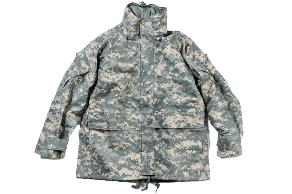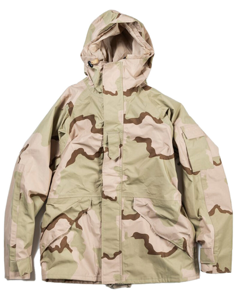 ご存じゴアテックス社製の防水透湿性素材を使用した、米軍ECWCSは近代ミリタリーの中でも人気のアイテム。デザートカモやデジカモは案外トラッドにも合わせやすい迷彩柄なのも嬉しい。あまり見かけない英軍タイプは胸に大きなフラップポケット付き。オーバーコート目的なので米軍より生地感はライトだ。
