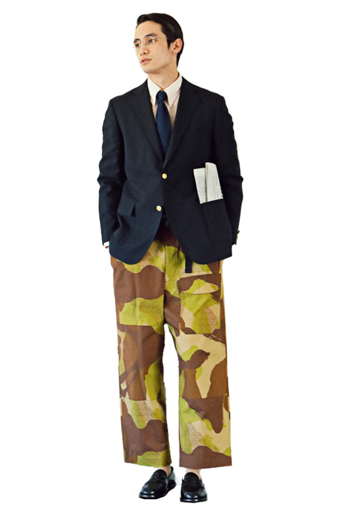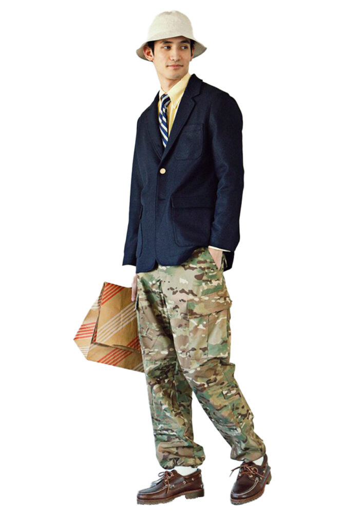 つい先ほど、たったひとりの自分会議で結論が出た。「結局のところ、紺ブレに欠かせないのはミリタリーパンツ!」俗に言う、6ポケットカーゴやベイカー、チノは言わずもがな。迷彩柄だって何本あっても困らない。定番のウッドランドやチョコチップからはじまり、最近では近代ミリタリー系のマルチカム、見慣れないヨーロッパミリタリー系も色々揃う。民間ブランドならアンダー5000円で買えるのも嬉しい! 型は6ポケットさえあれば良し。この武骨な太さが紺ブレにはちょうどいいじゃないか。