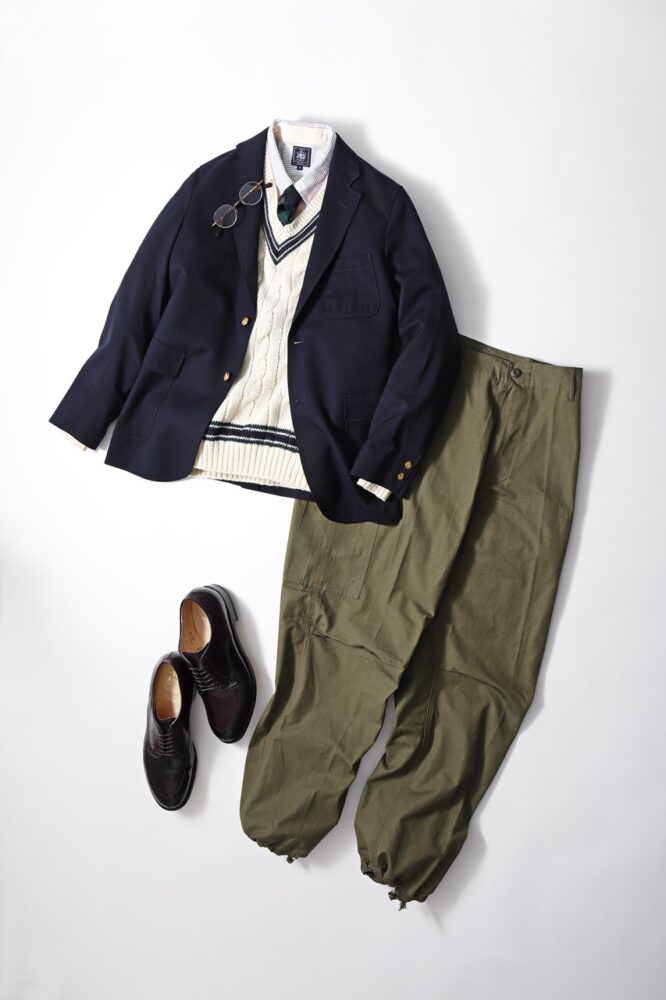 カーゴパンツを使った、おすすめミリタリートラッドコーデ