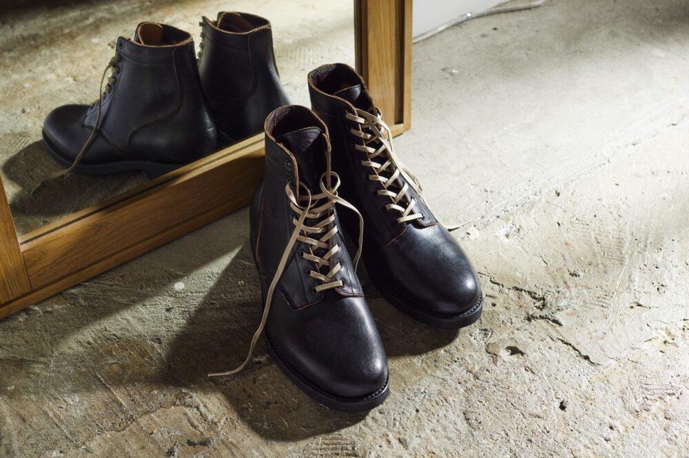新作モデルの「エスケープ」は、数あるUSアーミーのサービスシューズの中でも人気が高い、M43タイプを踏襲した一足。オリジナルに忠実なデザインを意識しながらも、ディテールは日本人の足に合わせてラインを修正している。