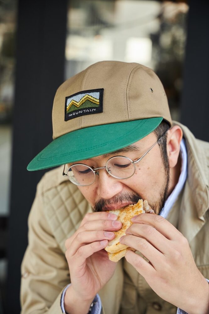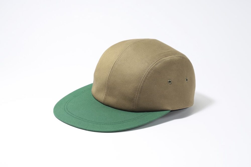 今回の別注は、編集部の不気味君と玉ちゃんがロングビルキャップを好んで被っていたことからスタート。手元にある様々なロングビルキャップを比較し、ツバの長さは80年代の某ブランドを参考にした約8.5㎝、生地は色味や素材感を検討した結果ツイルを選択。グリーン×ブラウンで、アウトドアでもハンティングでも合わせやすいカラーリングに。