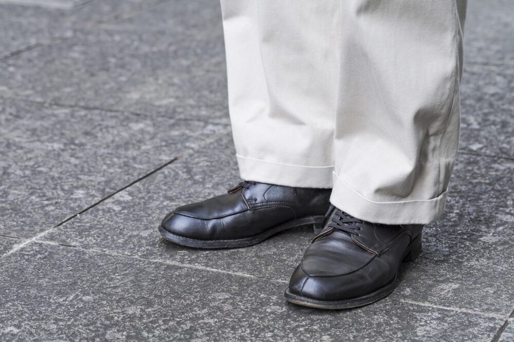 オールデンのV チップは、僕が初めて購入した高級靴。20代の駆け出しの頃に買って、ソールを直しながら20年以上履いています。