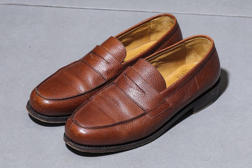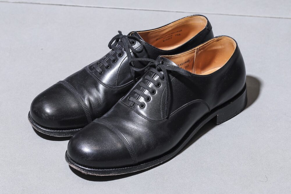 アーカイブコレクションのストレートチップです。一見ぽってりとして見えますが、履くとスマートにまとまります。街使いはもちろん、冠婚葬祭も僕はこれでいきますね。