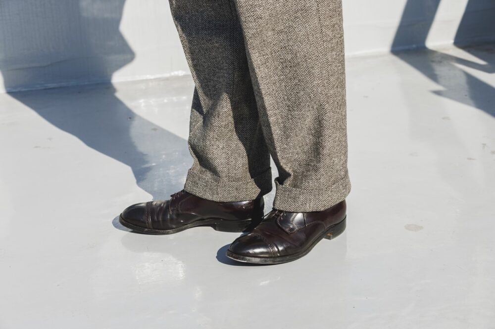 2016年頃からオーダースーツを着続け、足元はというとやっぱり革靴。ただ、独立したての若い頃からカジュアルでもどこかでちゃんとしたいという気概は持っていました。その表れが革靴。わりと背伸びをするのは嫌いではなかったのでオールデンを最初に買いました。
