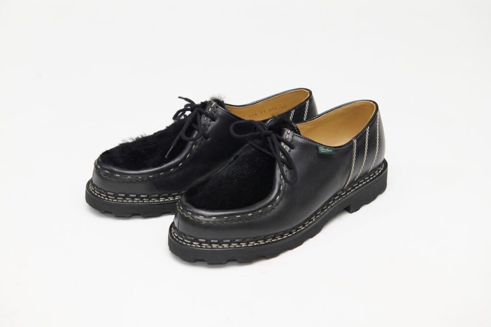 元祖チロリアンシューズともいわれるモデル、モジーン。エルメスのシューズラインでも取り上げられてましたよね。そんな背景もあって昨秋にラビッドファーで別注しました。