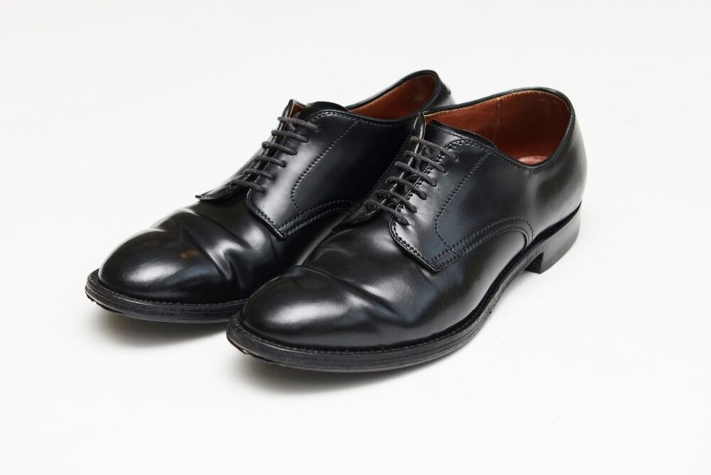 黒プレーントゥはこれでもう3足目。コードバン仕様のアナトミカ別注で、レースホールに裏カンがあったりライニングの一部がキャンバスだったりと芸の細かさが目を引きます。
