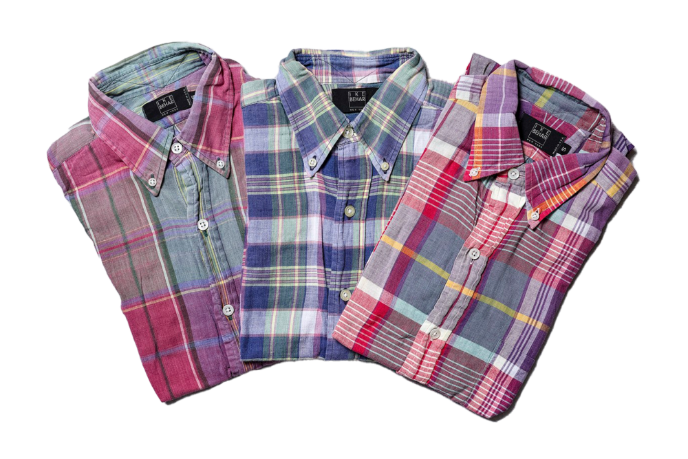 1.アイク ベーハーのマドラスチェックボタンダウンシャツ