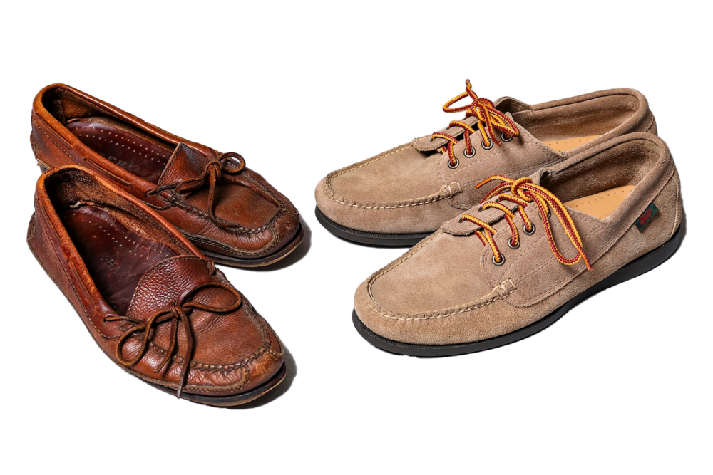 「左はコールハーンで30年選手です。右は今季、ジーエイチバスにスウェードアッパーとフラットなラバーソールで別注」。右/ 2万5300円(ディストリクト ユナイテッドアローズ☎03-5464-2715)