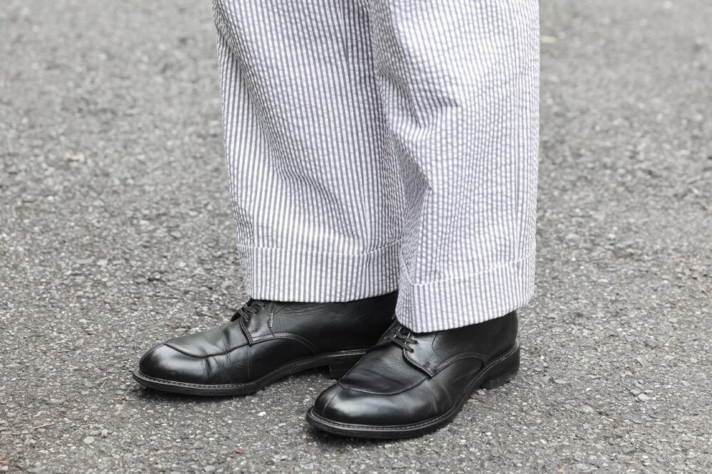 「今回は王道のサマートラッドです。暑さは気にせず、汗ばんできたら袖を捲るだけ。むしろそういう着こなし方も好みなので、夏でもザバッとした格好が多いんです。イメージしているのは、近所を散歩しているおじさんのような雰囲気。ただしシャツだけはB.D.でなく、シュッとした小襟で洗練させてみました」