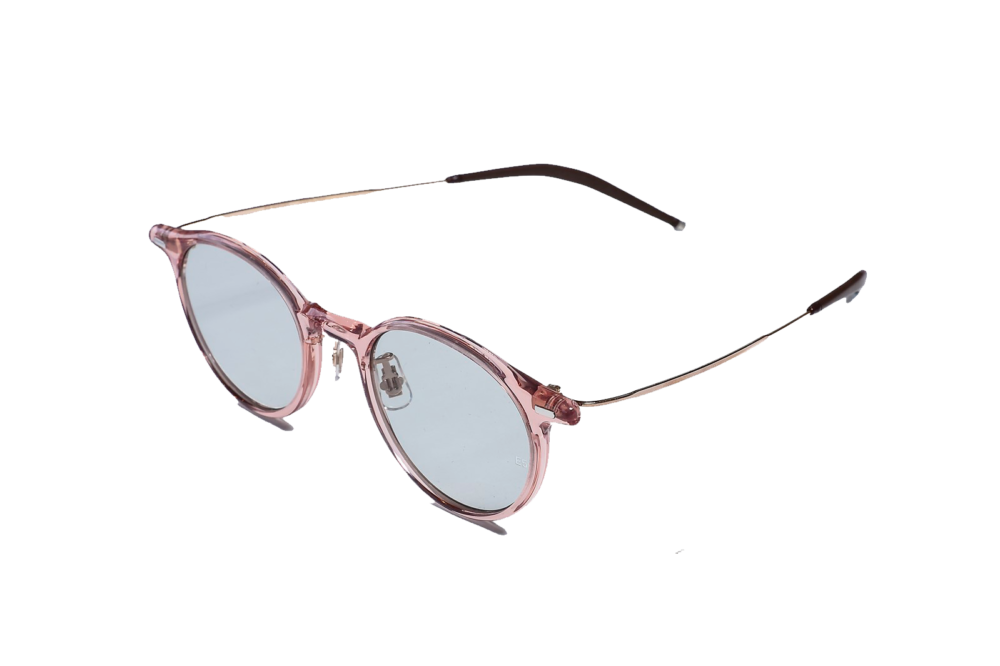 爽やかなクリアピンクのフレームが特徴。「マスクとの兼ね合いで、レンズも薄いタイプに。さらに『ツァイス』社の曇り止めを愛用しています」。4万6000 円(アイヴァンPR☎03-6450-5300)