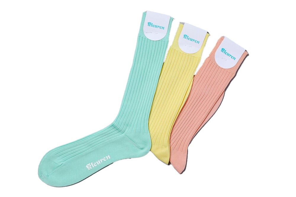 「ドレス寄りのソックスに色で遊べるアイテムが少なかったから」と立ち上げた自身のソックスブランド。エジプト綿の微光沢が夏にマッチする。各3520 円(ムロフィスinfo@yolken.co.jp)