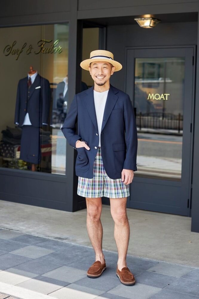 ジャケットとショーツの組み合わせはサイジングがコツ。