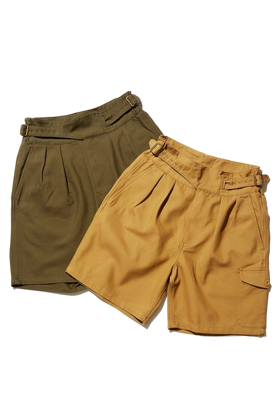 ワイドシルエットのグルカショーツは脱着を容易にするため、両サイドにウエストバンドとゴムリブを配備。「お洒落したおじさんに優しいグルカシ