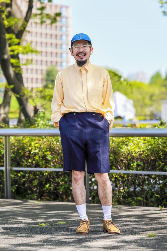 「トップスには必ず襟のあるものを選ぶことですね。今日来ているBD シャツは言わずもがな、ポロシャツや半袖シャツを必ずスタイリングに取り入れています。そしてショーツを合わせる時でも基本的にはタックインすることがほとんど。それだけでスタイルが締まると思いますね。明るい色味を入れられるのも、サマートラッドスタイルの特権ではないでしょうか」