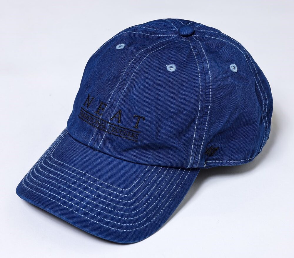 琉球の藍染めを用いたスペシャルなキャップは、沖縄のサウスストアとニートのヘッドショップのみのスペシャル。「年中欠かさず被っていますが、夏は藍染めが似合う」9240 円(にしのや)
