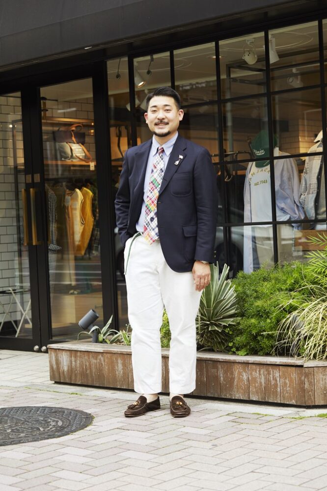 「夏場でも半袖やショーツは休日以外着ないので、見た目は通常のトラッドスタイルとあまり変わらないかもしれないですね(笑)。大事にしているのは素材感で、リネンやシアサッカー、マドラスチェックなどの生地を意識的に選んでいます。あとはタイを明るいカラーリングにするのも一興でイメージが変わりますよ」