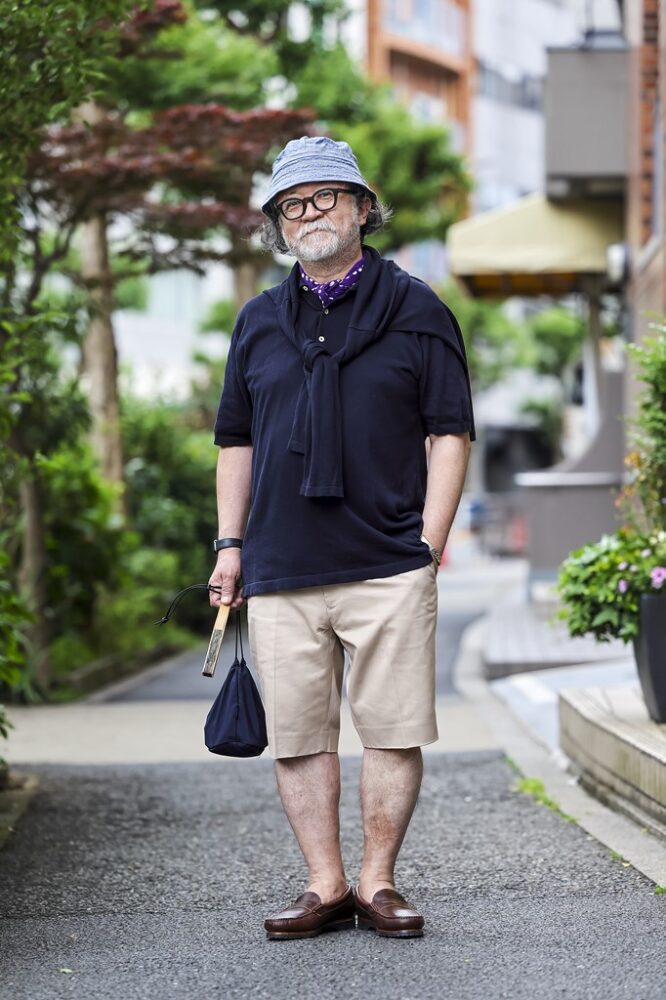 どうしても暑くなったら、本江さんのように肩掛けしてしまえばいい。どこかに大人の品をキープしておくのがトラッドであるのだから。