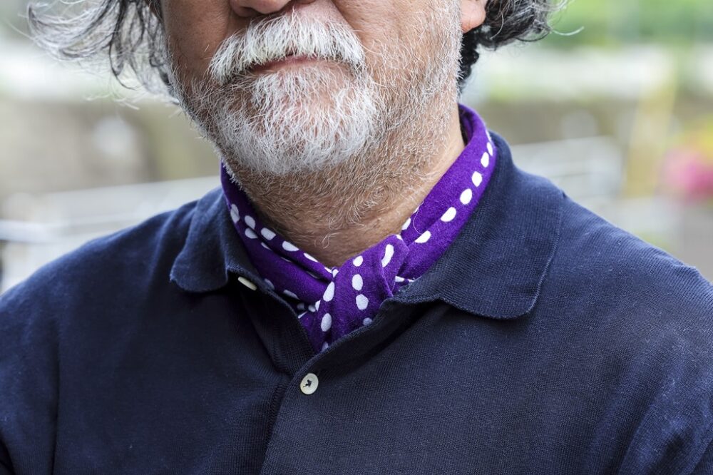 「夏も巻き物を提案していて、高温多湿な東京の夏は手ぬぐいも快適です。バンダナと違って縦長の形状のため巻き物としてアレンジしやすく、いざとなったら汗取りとして頭に巻いたりも」