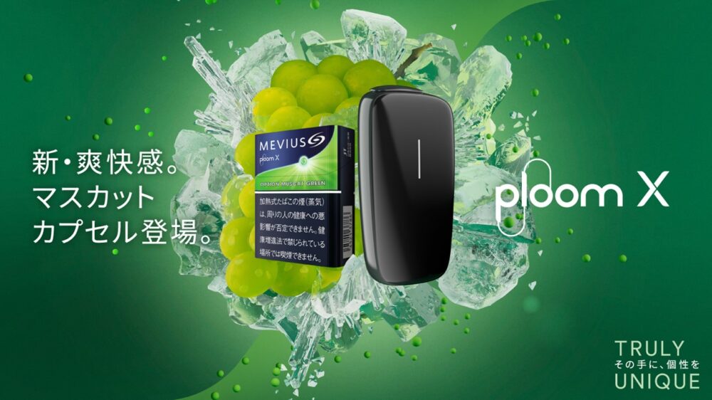 また、フィルター内に搭載したカプセルを潰すことで口のなかに一気に弾けるマスカットの爽快感と瑞々しさは、メンソールとも非常に相性がよさそうだ。「Ploom X」の加熱技術に最適なたばこ葉のブレンドを追求したという本作、発売前ながらメンソール好きとしてはたまらない朗報である。