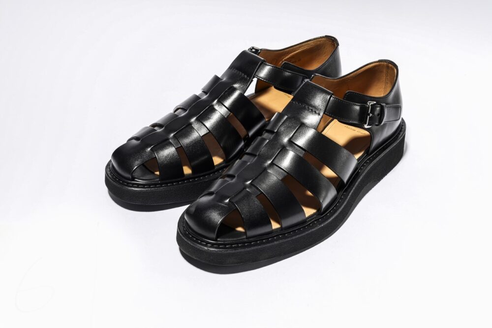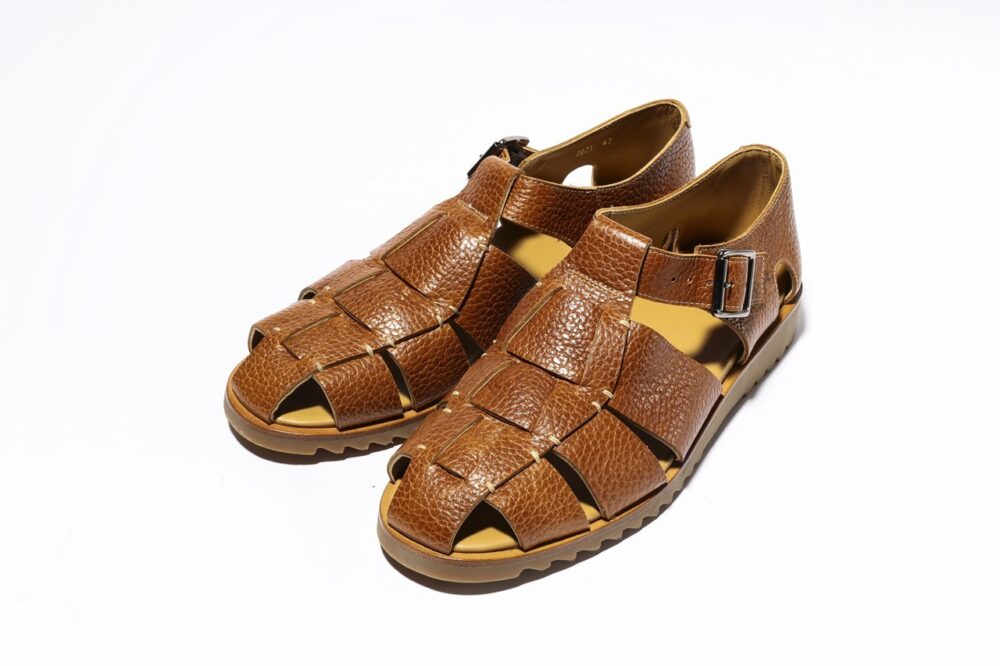 パラブーツの定番グルカサンダル[パシフィック]にシーズナルカラーでミディアムブラウンのシボ革が登場。自社生産でクッション性や屈曲性に優れるスポーツソールまで同系色に。3万9700 円(パラブーツ青山店 03-5766-6688)