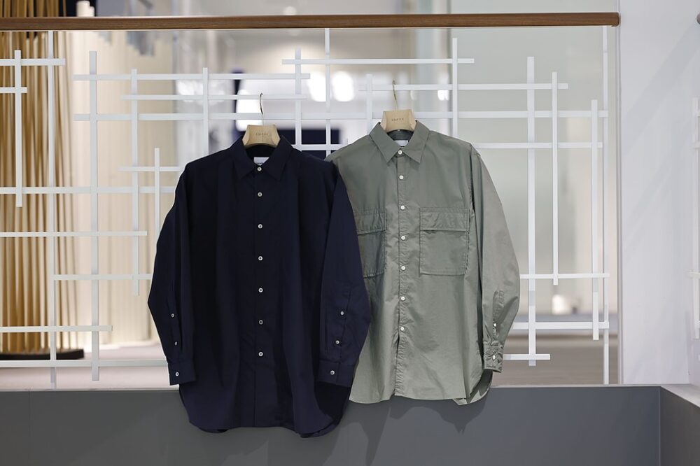 ブランドの軸となるのはシャツとパンツ。いずれもドレスアイテムを得意とする国内の工場に限定して生産され、「ドレス工場にてカジュアルアイテムを作る面白さ」をキーワードに仕立ての良いシンプルなウエアを展開する。今回、大瀧さんが紹介するのはブランドの真骨頂とも言えるシャツ。