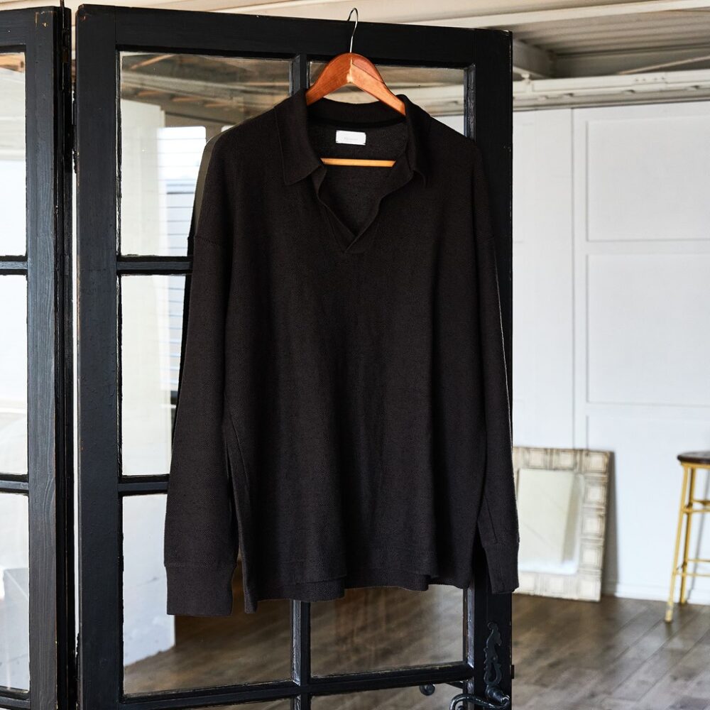 日本製にこだわり、アイテムを展開する「フランネル」より、2022SSの新作、リネン55%、コットン45%の鹿の子編みで仕立てたスキッパーポロ。フランネルでの鹿の子編みのポロシャツの展開は初となる。